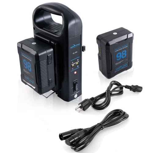IndiPRO Tools 2 x Micro-Series 98Wh Li-Ion V-Mount Batteries with Dual V-Mount Battery Charger Kit